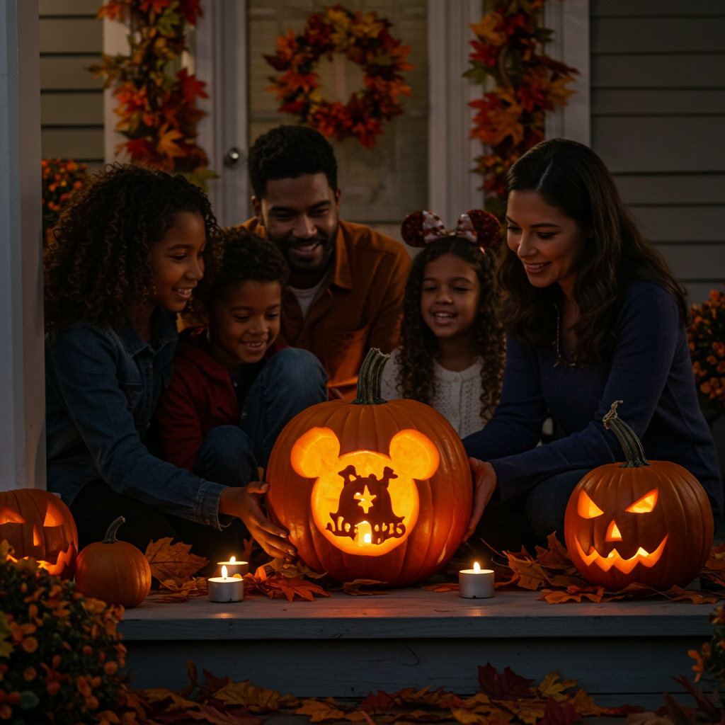 Start with a large, round pumpkin from your local grocery store ($5-12 depending on size). Use Disney’s official Mickey pumpkin stencils (free downloads from Disney Family website) or create your own. You’ll need basic carving tools from Walmart ($8-15) and battery-operated LED candles for safe lighting ($5-10 for a pack). Total project cost runs $18-37 and takes 45-60 minutes to complete.