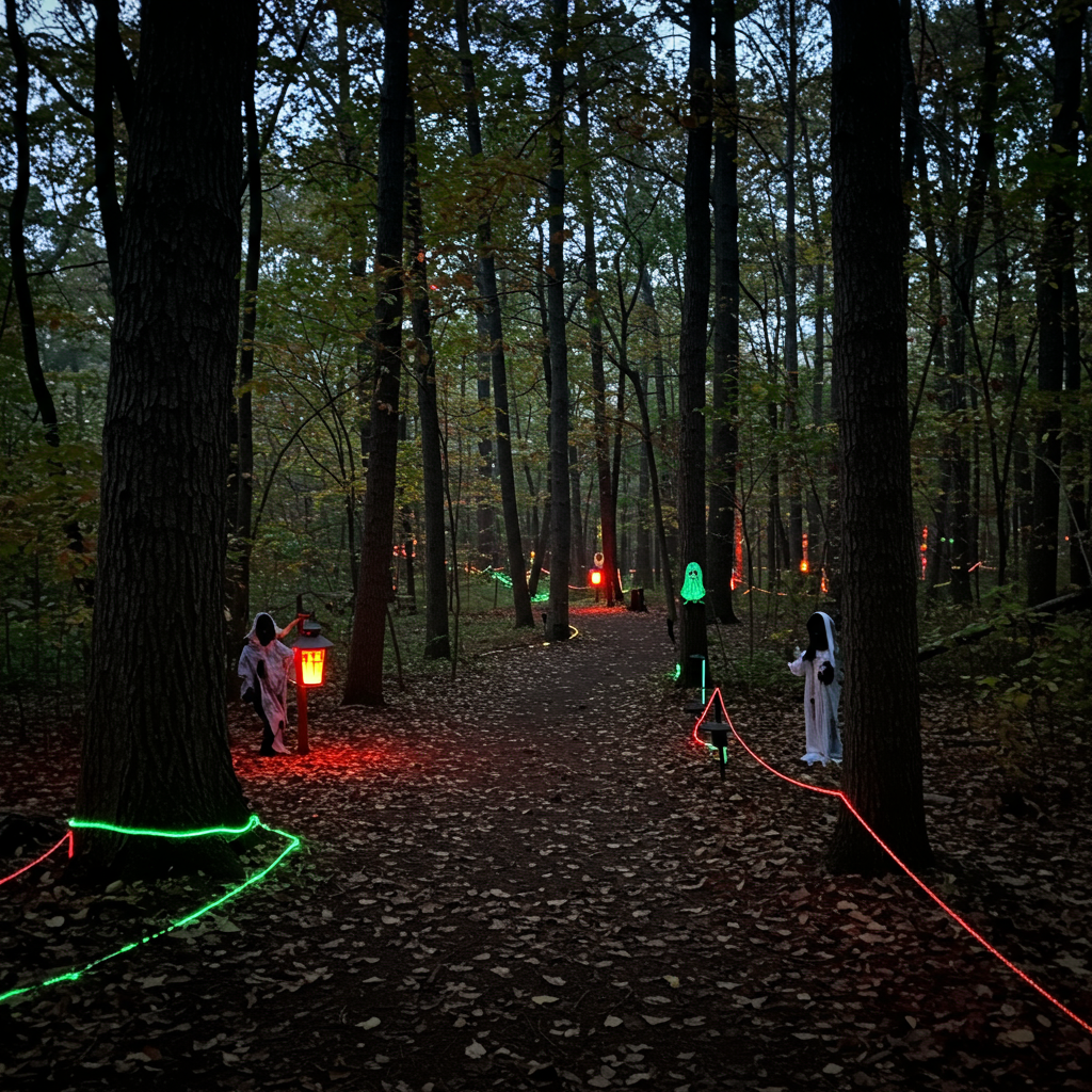The natural forest setting provides authentic haunted atmosphere that indoor spaces can’t match.