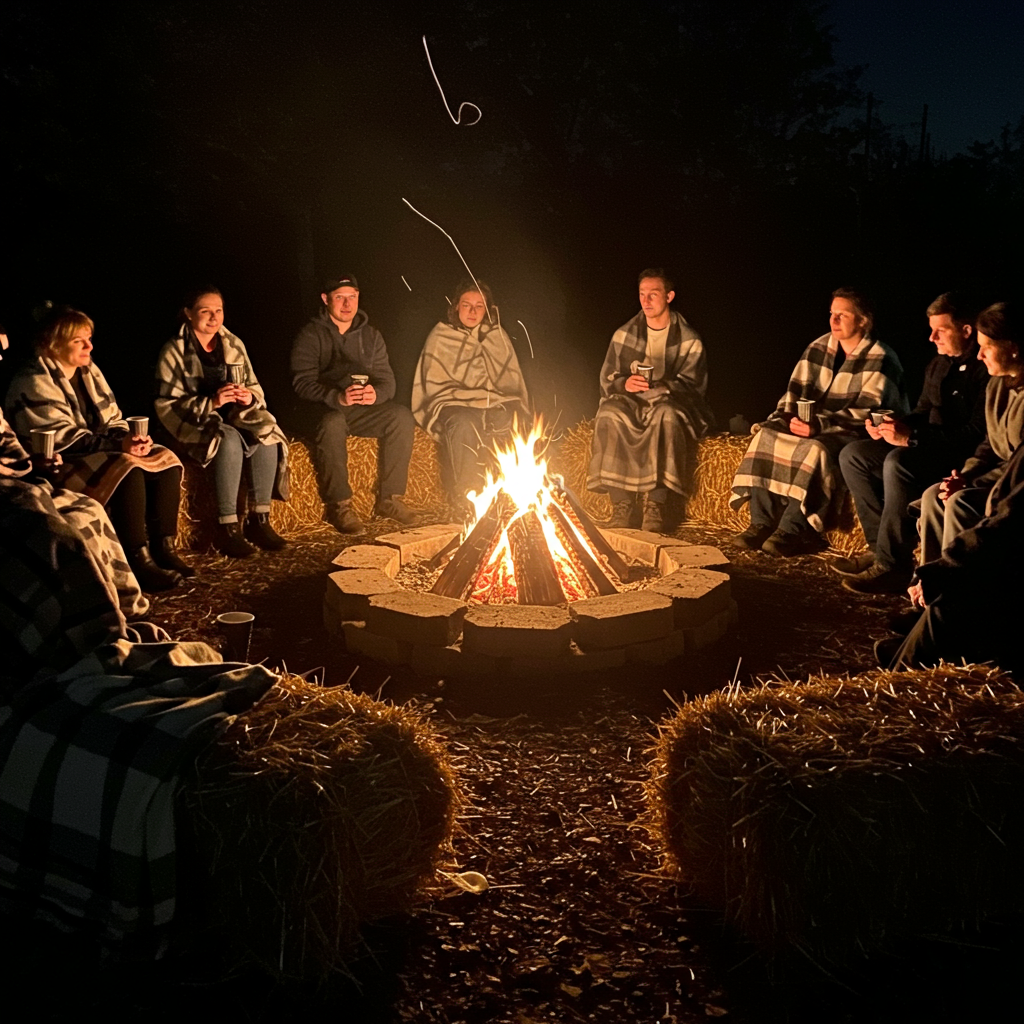 Build a proper fire pit surrounded by log seating or hay bales. Prepare ghost stories, urban legends, and encourage guests to share their own scary experiences.
