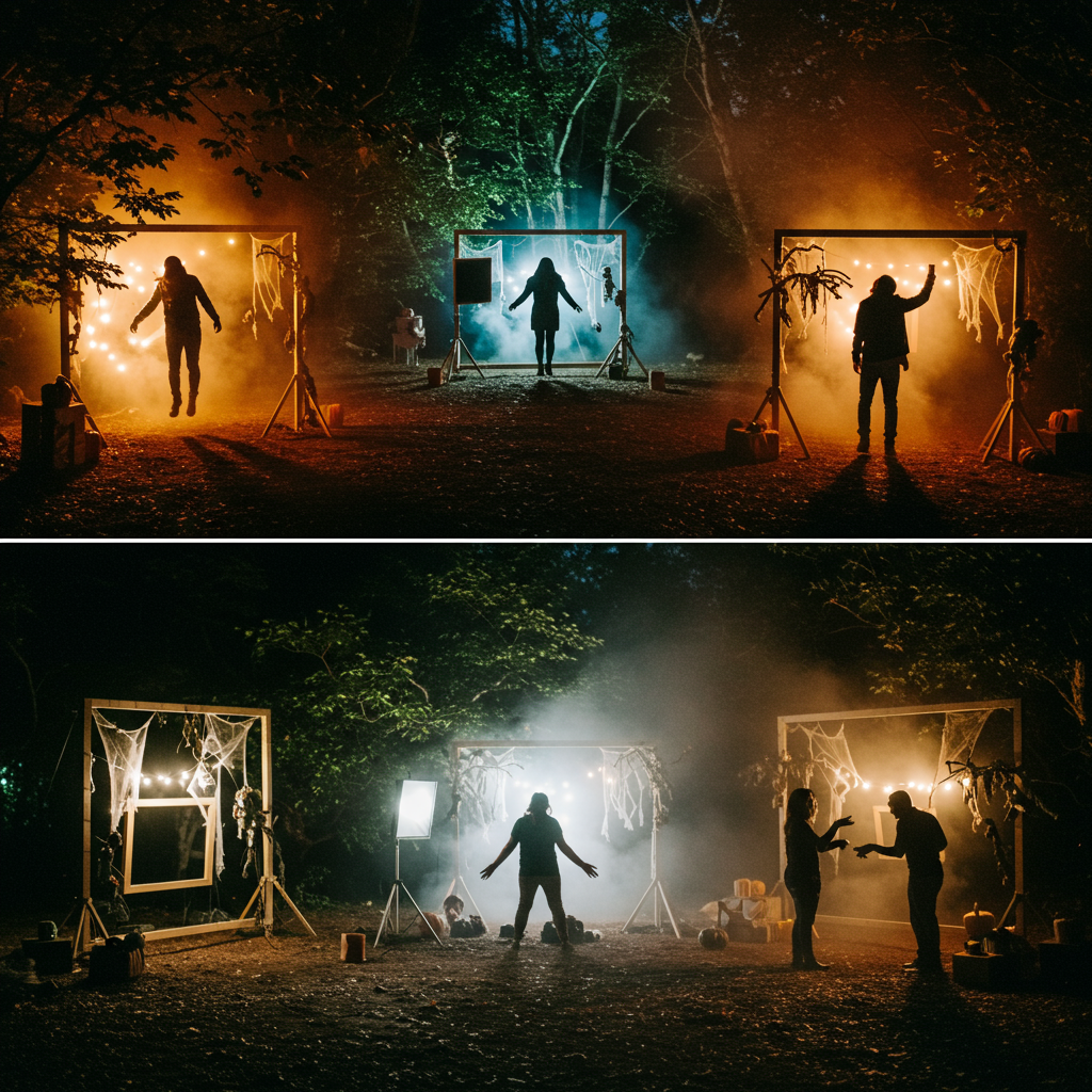 Set up multiple photo stations throughout your outdoor space with different Halloween themes. Guests must take specific photos at each station.