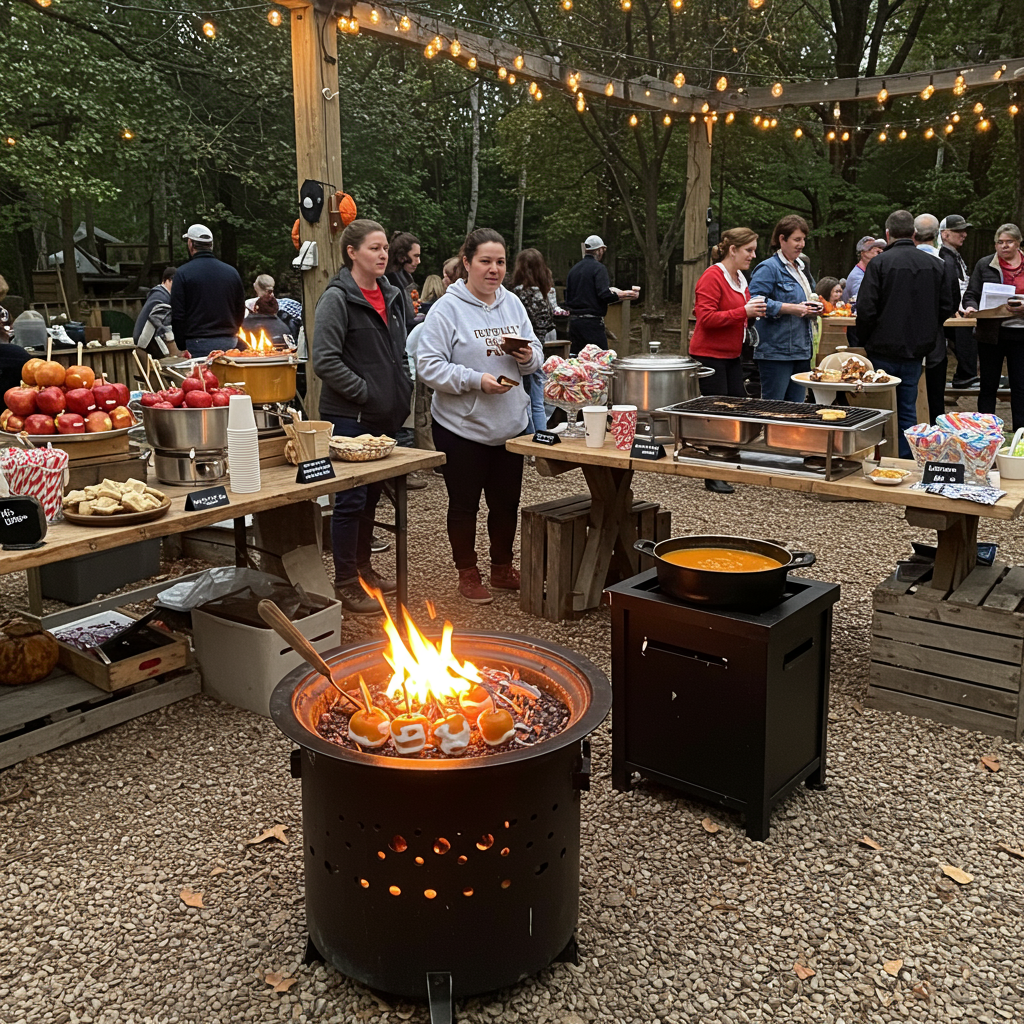 Set up different themed food stations throughout your outdoor area. Think caramel apple station, hot cider bar, candy station, and hearty soup warming station.