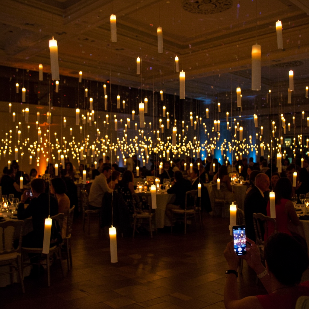 Use fishing line to hang LED candles throughout your space at varying levels. This creates the floating candle effect from Harry Potter.