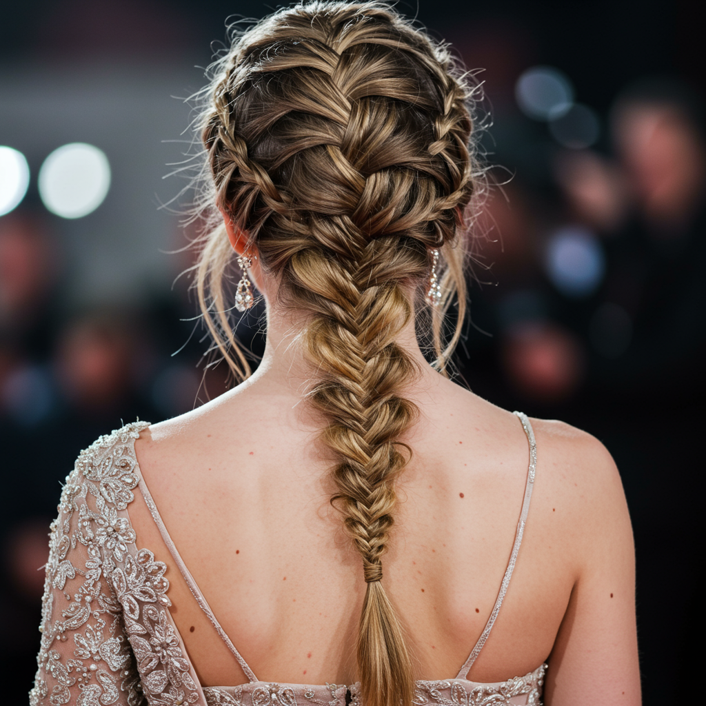 Step one: Start with glossed, detangled hair sleek serums like Olaplex No.7 or Moroccanoil work wonders. Braid the hair Dutch style (crossing sections under, not over), pulling strands loose as you go for extra volume. Secure with a tiny clear elastic and gently pancake the braid to thicken it even more.