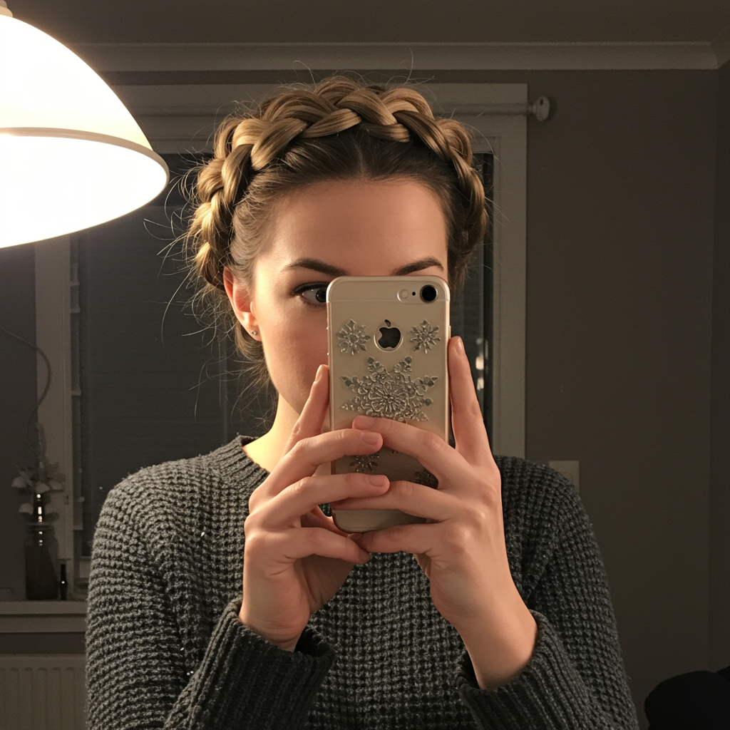 Want instant princess energy? A milkmaid crown braid frames your face and looks extra cute with cozy winter knits. This braid suits most hair types especially those with a bit of natural wave or thickness. Blonde shades are super popular (think Champagne Blonde or Honey Balayage), but it’s just as pretty on rich brunettes.