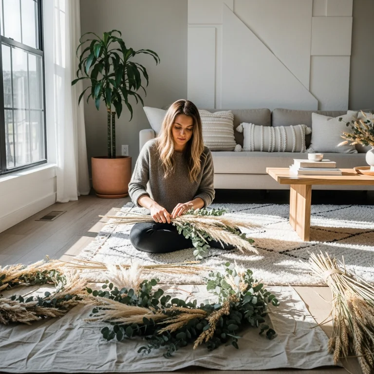 Include dried pampas grass, eucalyptus, and wheat in arrangements. The neutral botanicals create modern organic Christmas. Your dried Christmas bohemias perfectly!