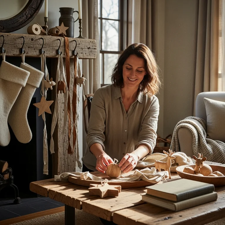 Include wooden ornaments, wool stockings, and linen ribbons. The natural materials feel genuine and handmade. Your textured Christmas warms beautifully!