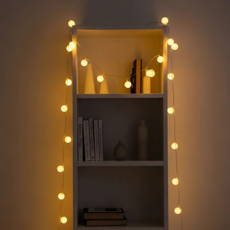 Drape warm white string lights along window or bookshelf. The soft sparkle creates holiday atmosphere without ornaments. Your lit apartment glows gorgeously!
