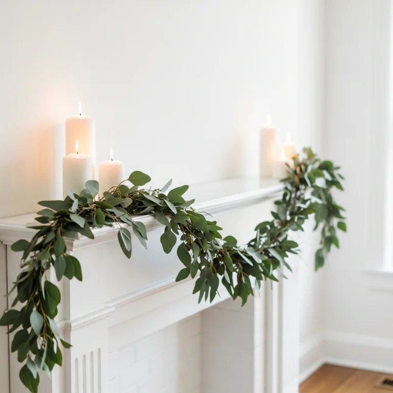 Hang eucalyptus or pine garland along mantel or doorway. The fragrant greenery adds festive touch without overwhelming. Your garland apartment smells perfectly!