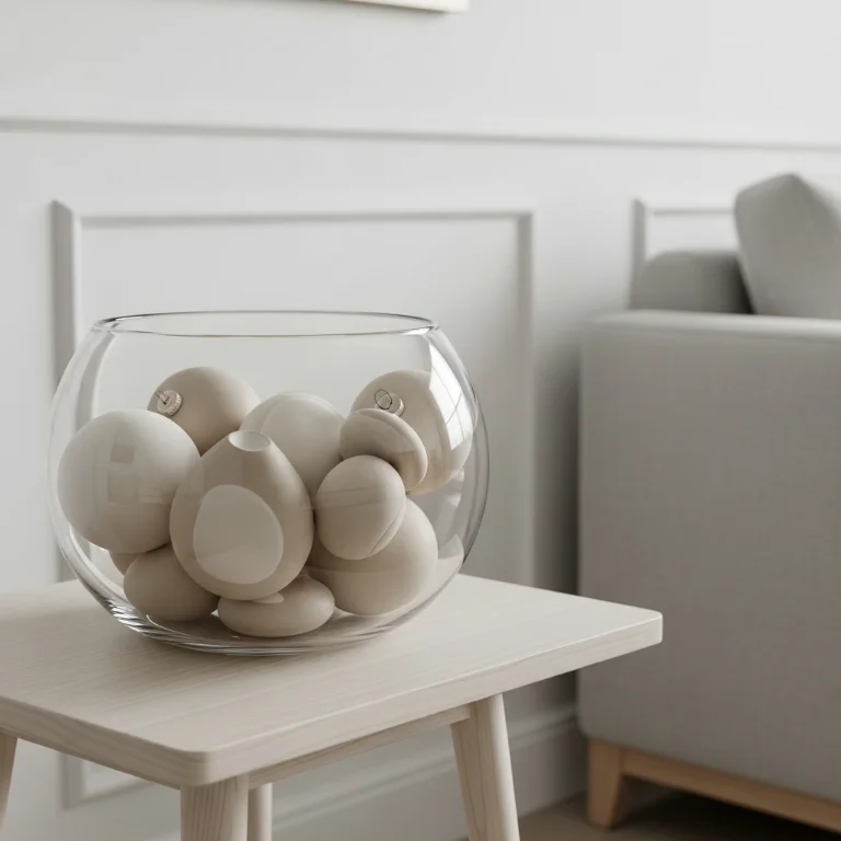 Cream and beige decorations feel intentionally elegant. This subtle approach maintains calm minimalist aesthetic. The neutrals soothe!