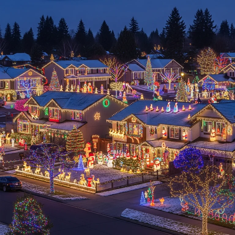 Coordinated houses create impressive unified show together. This collaborative approach builds community spirit. The neighborhood syncs!