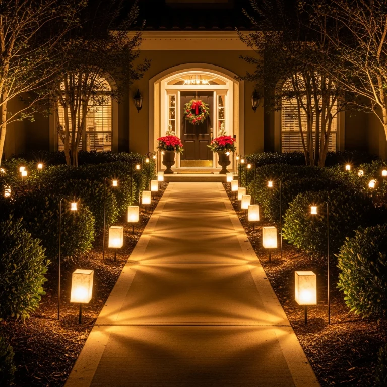 Place luminaries or stake lights along walkway to door. The gentle glow creates magical welcoming entrance. Your pathway outdoor lights guide gorgeously!