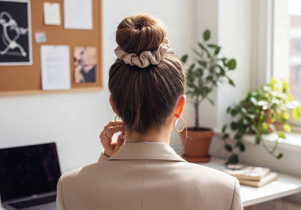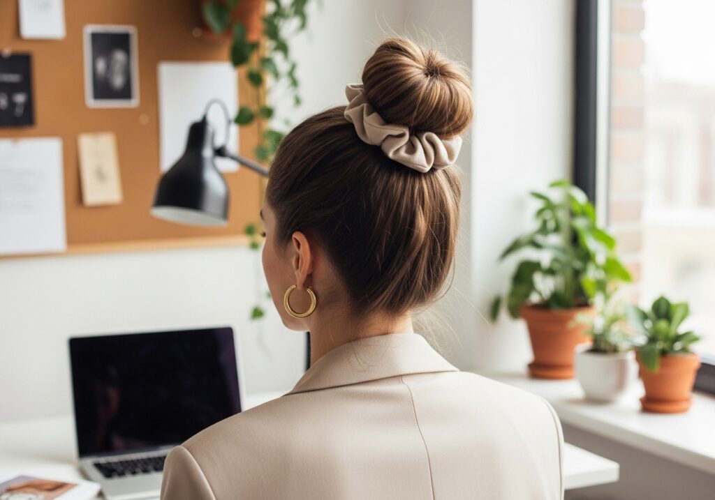 Make a statement with the jumbo scrunchie bun—equal parts trendy and practical…