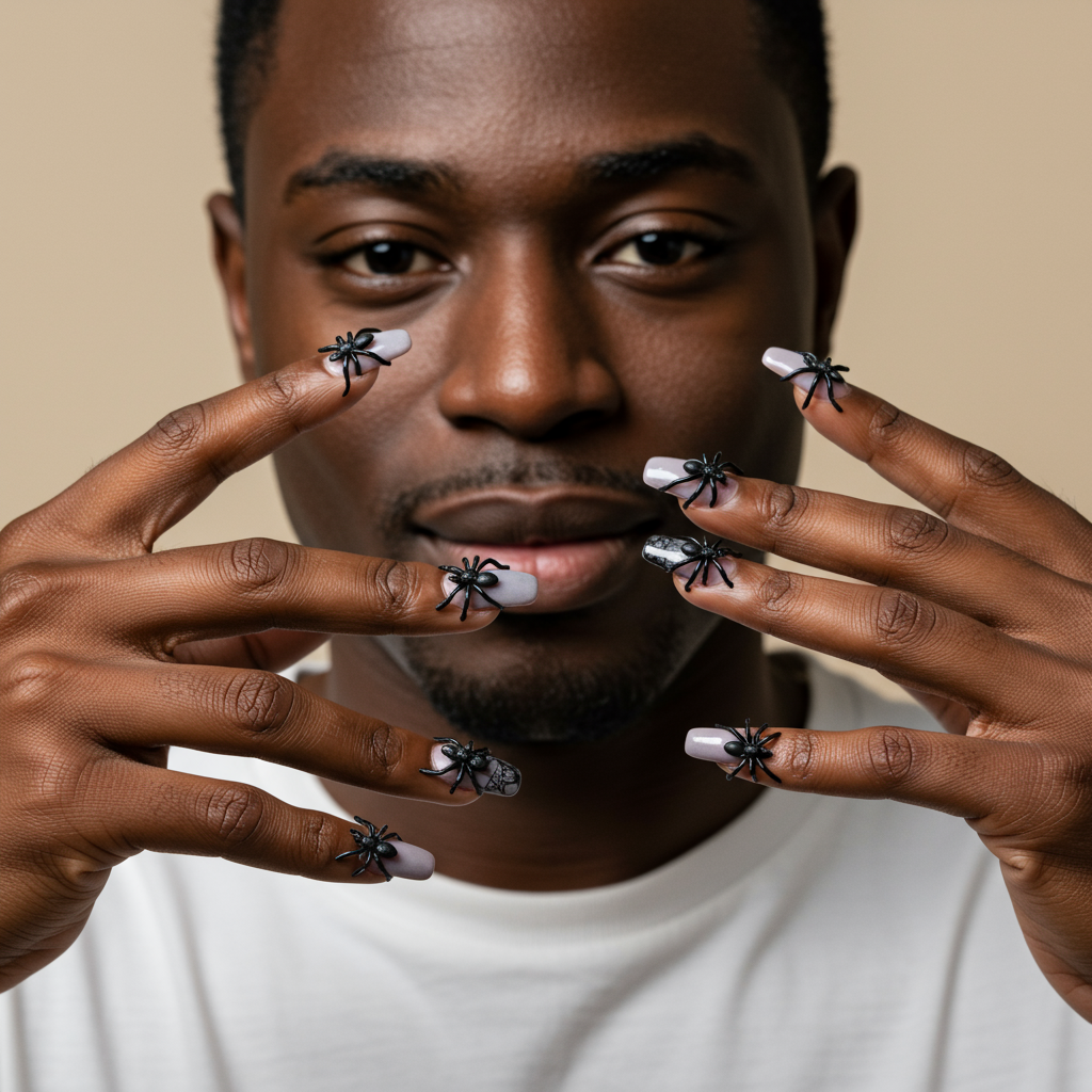 These nails are perfect for anyone who wants something genuinely spooky but still sophisticated. The 3D element makes them incredibly eye-catching without being overwhelming. You can control the fear factor by adjusting spider sizes – smaller spiders feel more elegant while larger ones create more dramatic impact. Add tiny silver or gold accents to the spider bodies for a luxe twist on classic creepy.