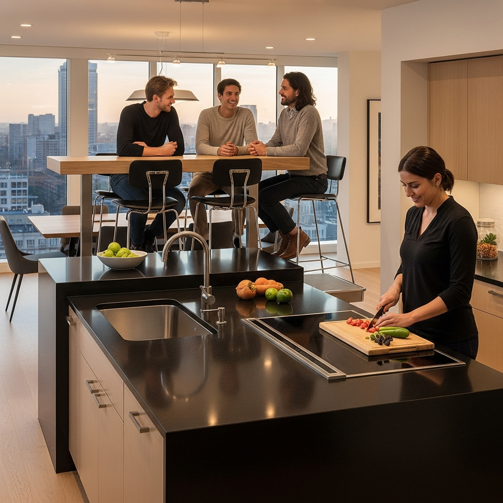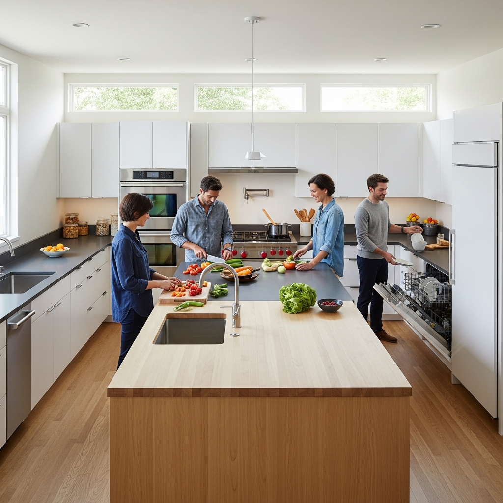 Multiple cooks work simultaneously without interfering with each other. Your spacious kitchen accommodates perfectly!
