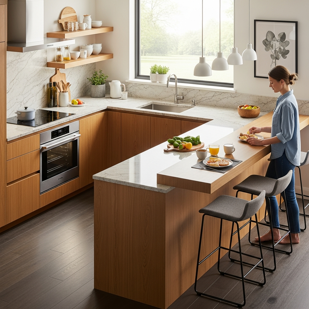This layout creates natural separation between cooking and dining areas. Your zoned kitchen flows beautifully!