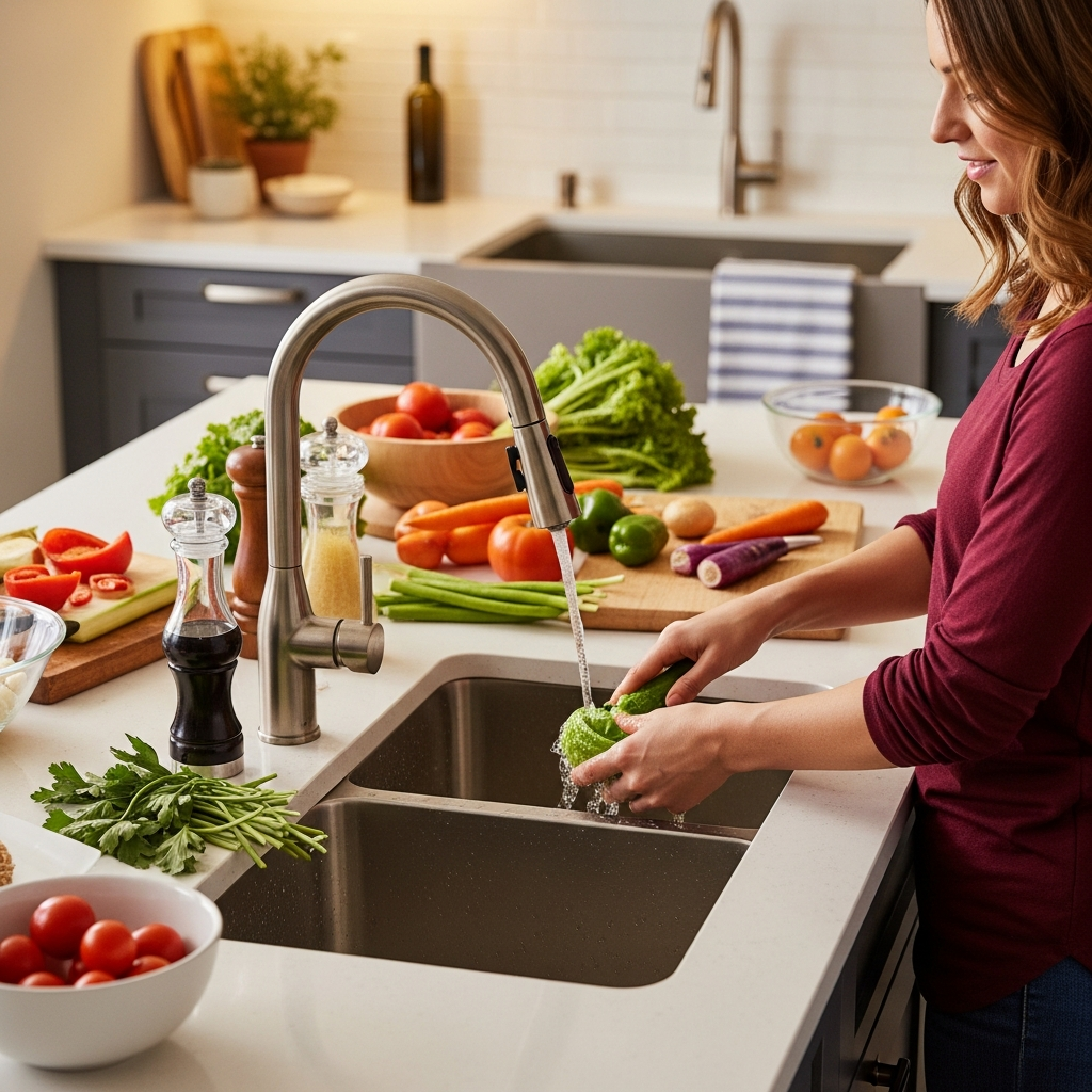 Install small prep sink in island for washing vegetables. The convenient water source makes cooking easier and faster. Your sink kitchen preps perfectly!