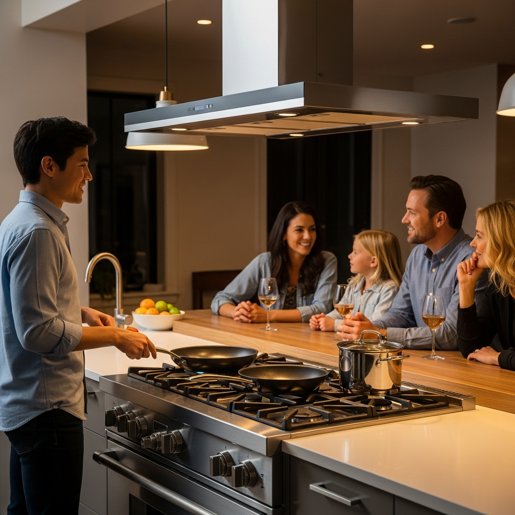 Place range in island facing into room for socializing. The central cooking allows conversation while preparing meals. Your cooktop kitchen connects beautifully!