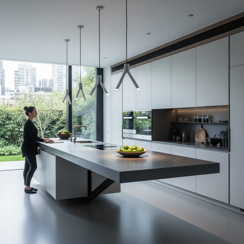Build island appearing to float without visible supports below. The suspended effect creates striking architectural element. Your floating kitchen impresses dramatically!