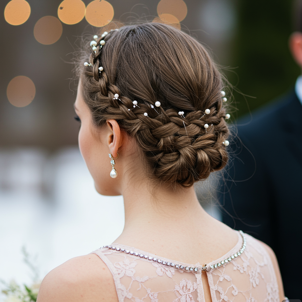 If you want something as dreamy as a snow day, try a waterfall braid with pearly pins or tiny silver clips woven in this “frosty cascade” trend is everywhere right now, inspired by influencers like Emily Chen.