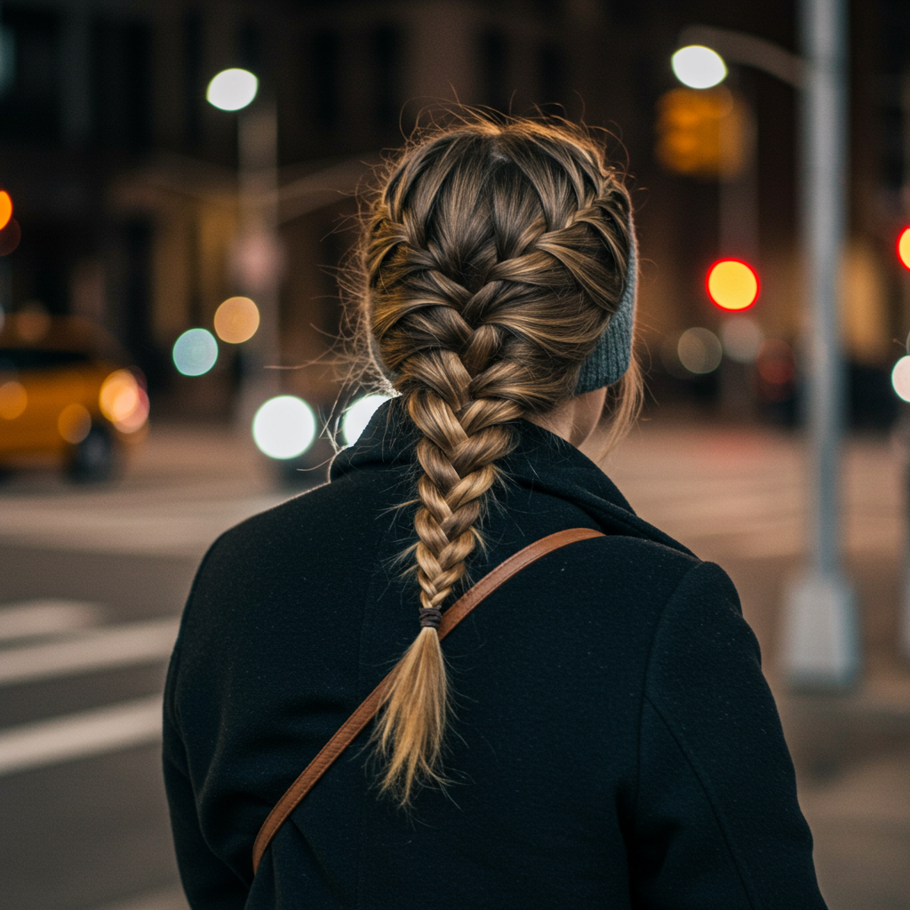 Winter’s most versatile look hands down. Rock a classic French braid to the nape and finish with a low pony and you get both polish and comfort, ideal for hat days and commute chaos. Section hair, braid traditionally, then tie off with a slip-silk hair tie. A touch of Ouai Matte Pomade keeps flyaways down.