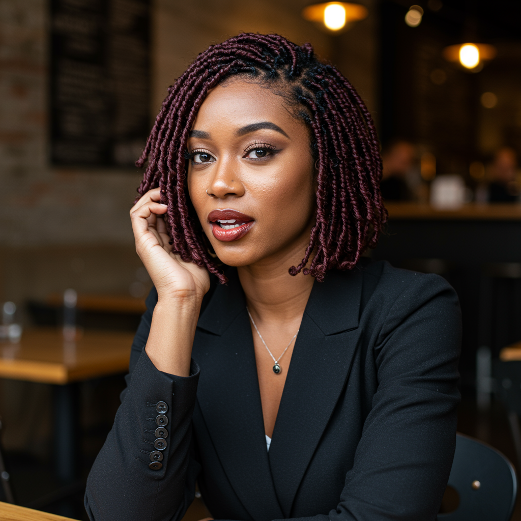 A deep side part gives this look modern edge, and cherry cola or copper balayage highlights are super trendy now. Perfect for those who want protective style with minimal fuss and tons of compliments.