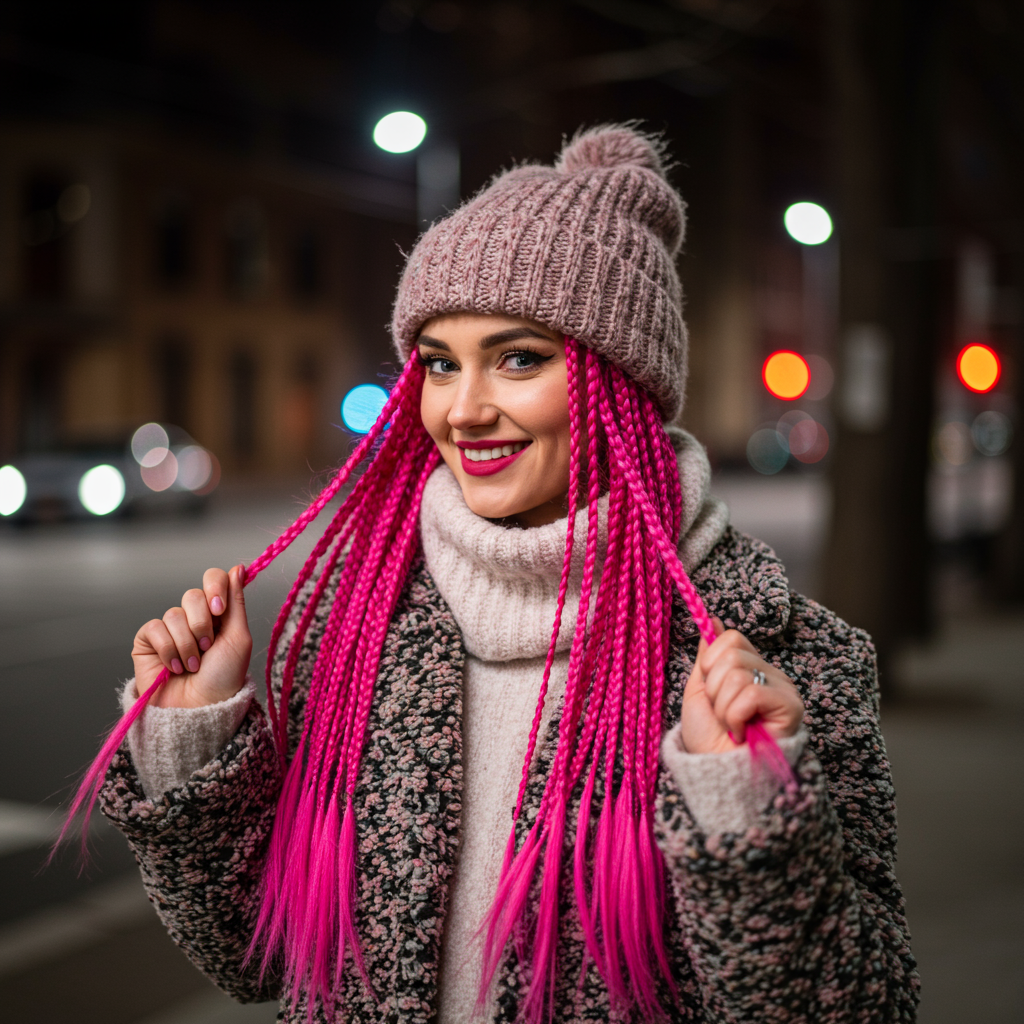 Pink braids are bold, flirty, and anything but basic in winter. Use Manic Panic’s Cotton Candy Pink on a few face-framing strands or intertwine hot pink extensions with your braids. Best on brown, black, and platinum hair, they bring a playful punch to every winter outfit. Wear with a fuzzy beanie or earmuffs and finish with a spritz of Color WOW Dream Coat for shine.