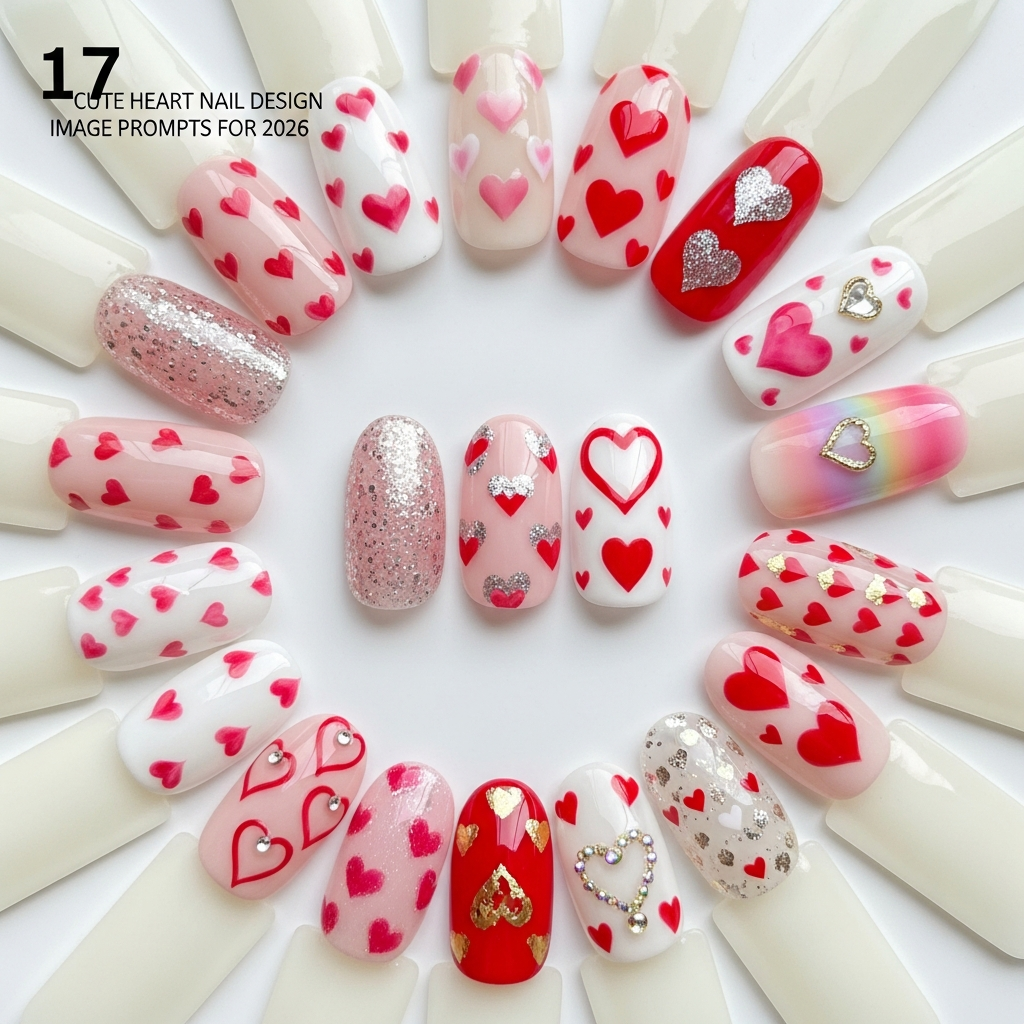 Cute heart nails make Valentine’s Day extra special! These seventeen designs prove that hearts work for every style—from minimalist outlines to bold glitter-filled statements. Whether you prefer tiny scattered hearts or dramatic large designs, your manicure can celebrate love adorably. Choose the design that makes your heart happy!