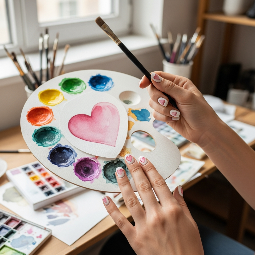Soft watercolor hearts create dreamy romantic effects. This nail technique looks artistic and gentle. The blended edges feel organic and beautiful together.