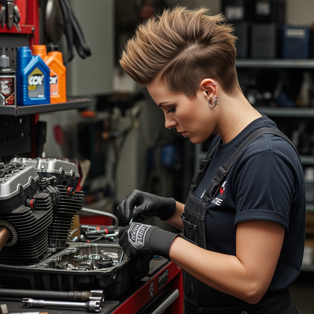 Ultra-short sides meet carefully point-cut, upward spikes on top for a look that screams attitude. Perfect for showing off bold earrings and sharp jawlines, this edgy short haircut can be tousled for a fun, casual vibe or fixed for a sharp, rebellious aesthetic. It’s an instant impact haircut for those who want bold style without fuss.