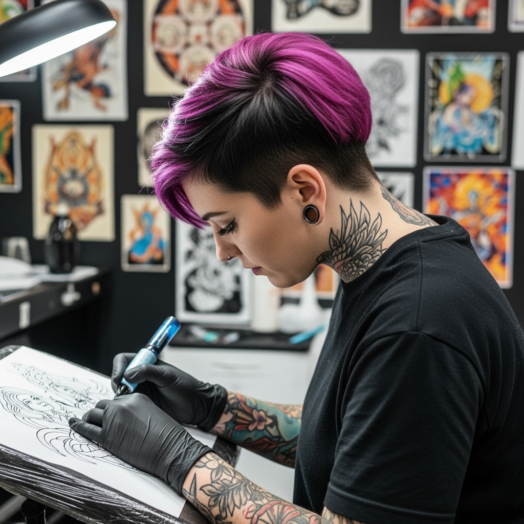 This striking combo keeps the sides and back dark and cropped tight, while the top is left longer and dyed wild colors like platinum blonde, electric blue, or magenta. The sharp contrast is graphic and playful, turning this edgy short haircut into a canvas for creative expression that’s impossible to ignore.