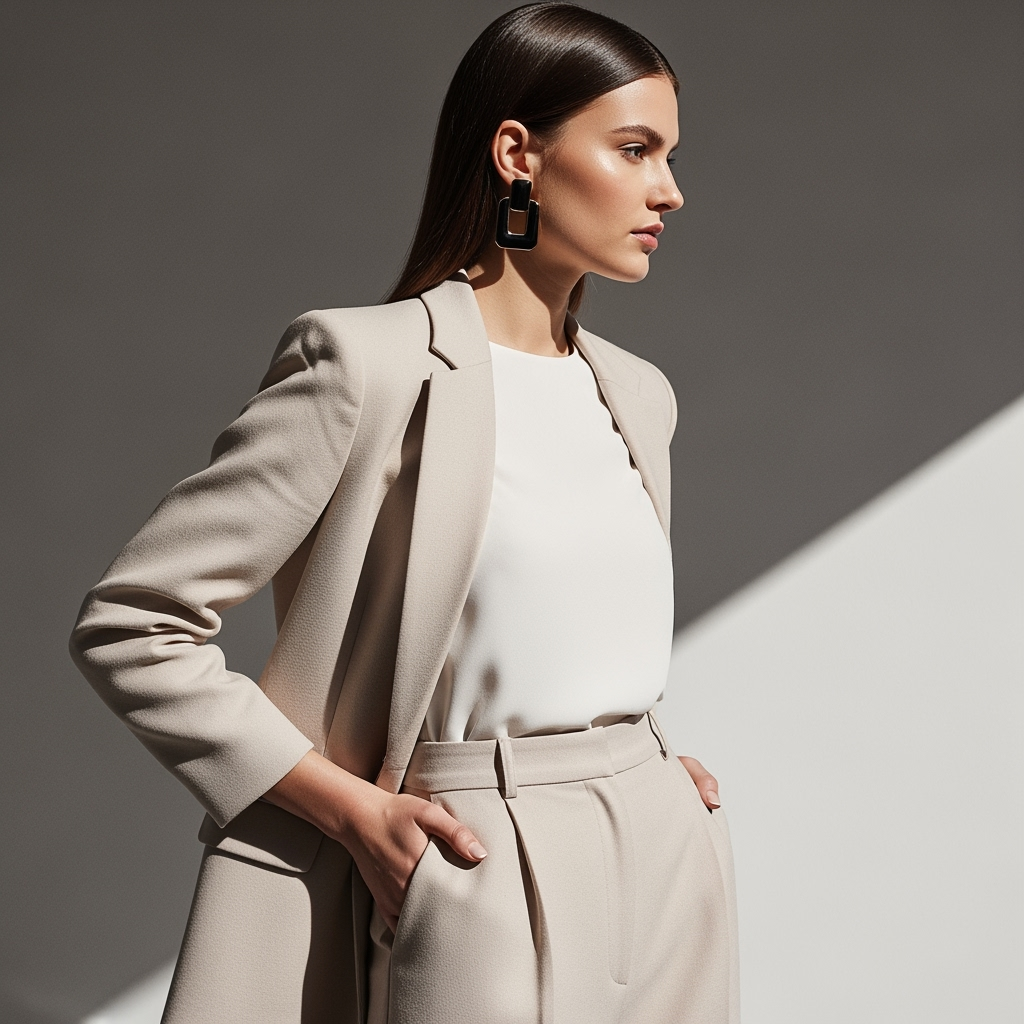 Loafers or ankle boots complete the outfit beautifully. Choose neutral tweed for maximum versatility, or a subtle pastel for a softer look.