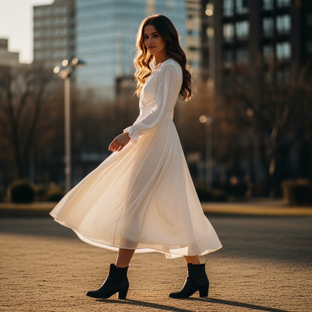 The midi dress is the sweet spot between comfort and sophistication. Choose one with a soft, fluid fabric that moves as you walk it instantly creates a graceful silhouette.