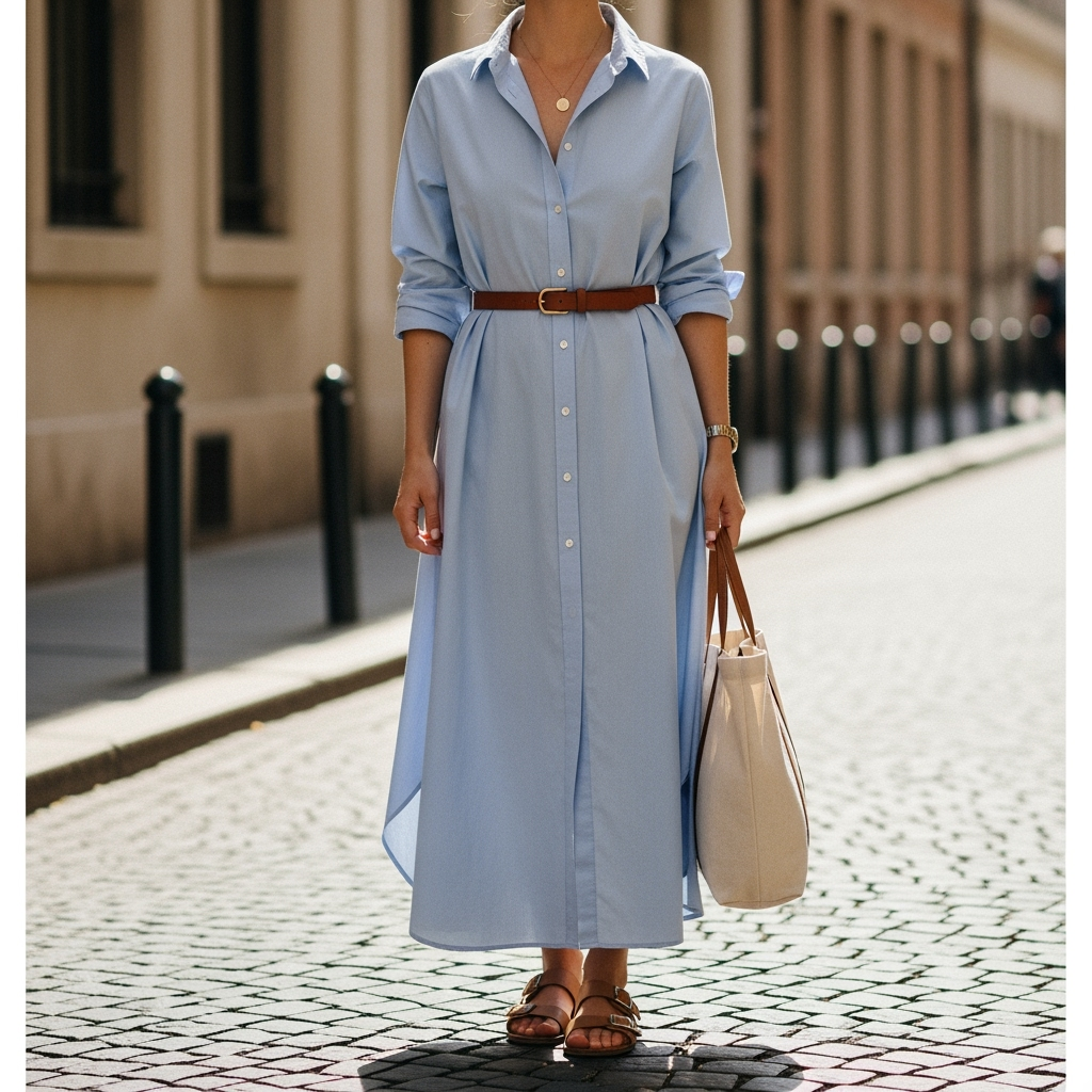 Few pieces are as easy as a shirtdress it’s an entire outfit in one. Cinching it with a leather belt transforms the silhouette and adds polish.