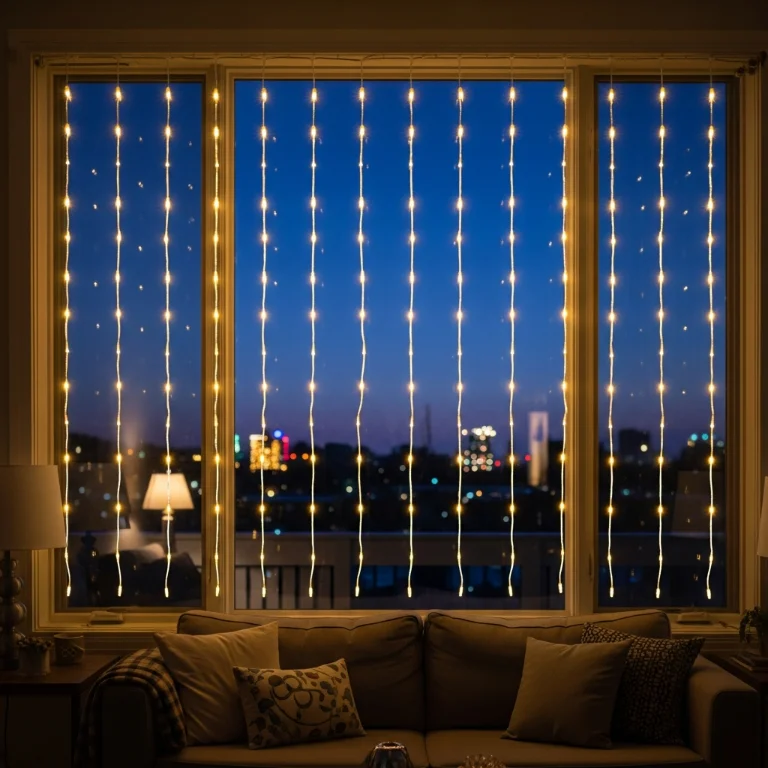 12. Curtain Lights Create Indoor Magical Window Backdrop