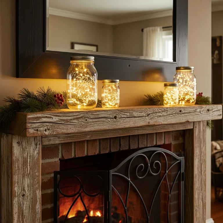 Fill mason jars with battery string lights creating lanterns. The glowing jars add rustic indoor Christmas charm. Your jar lights shine beautifully!