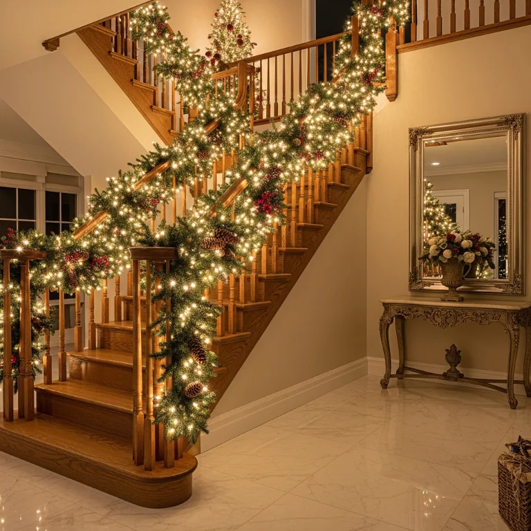 4. Staircase Garland Lights Indoor Welcoming Entry Glow