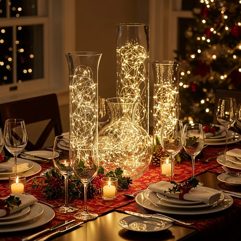 Fill clear vases with fairy lights creating centerpieces. The tiny bulbs add delicate indoor Christmas sparkle. Your fairy lights glow gorgeously!