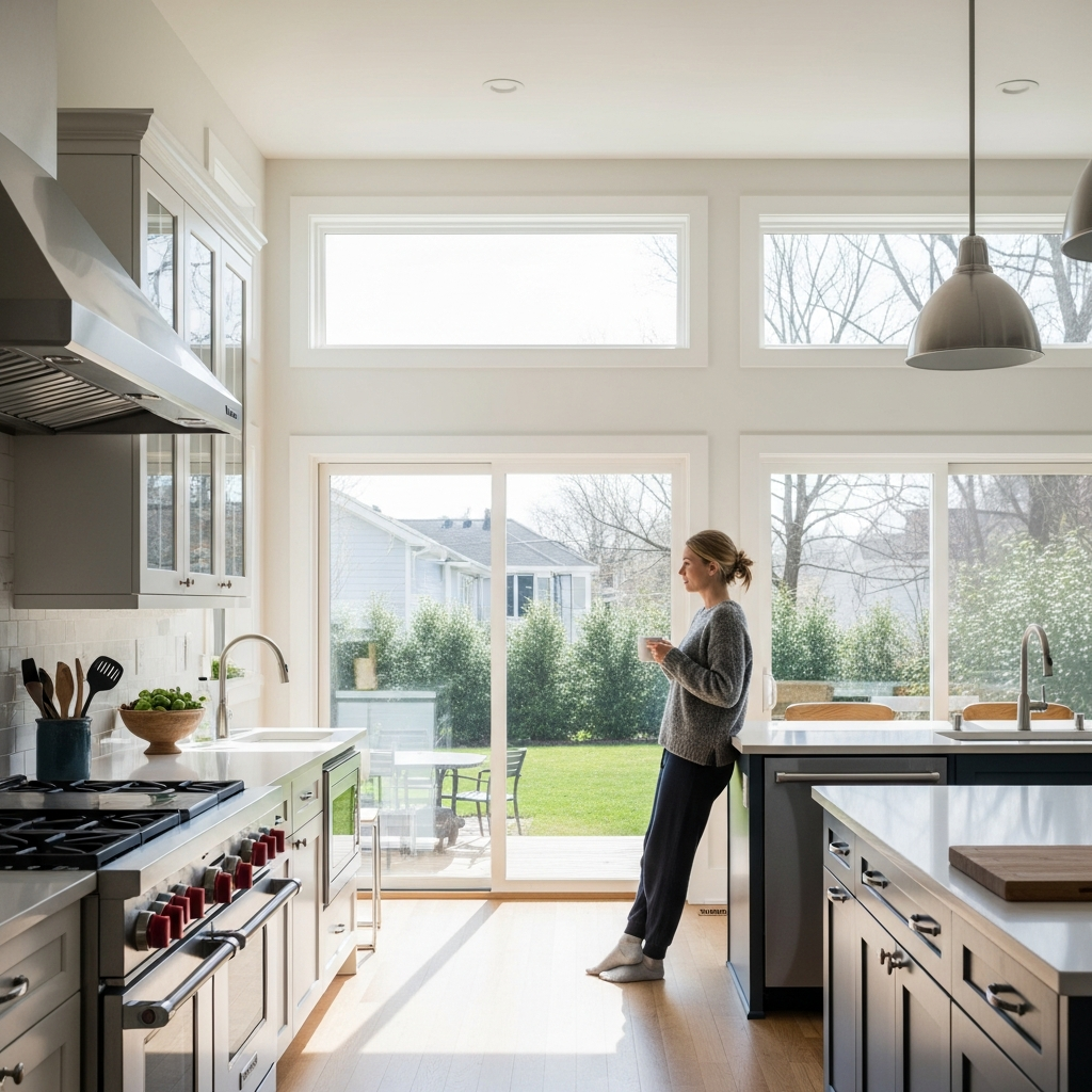 Add larger windows or glass doors. The increased daylight makes spaces feel bigger. Your bright kitchen glows naturally!