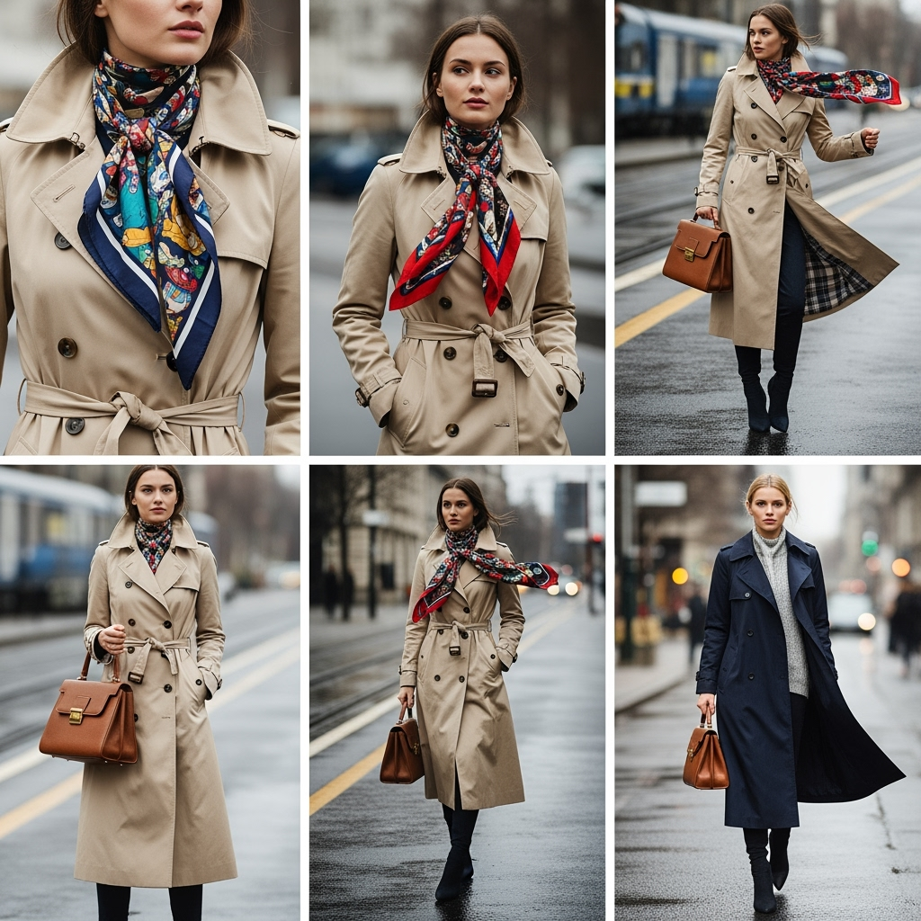 A timeless trench coat is already a style icon, but add a silk scarf at the neckline and you’ve elevated it to cinematic elegance.