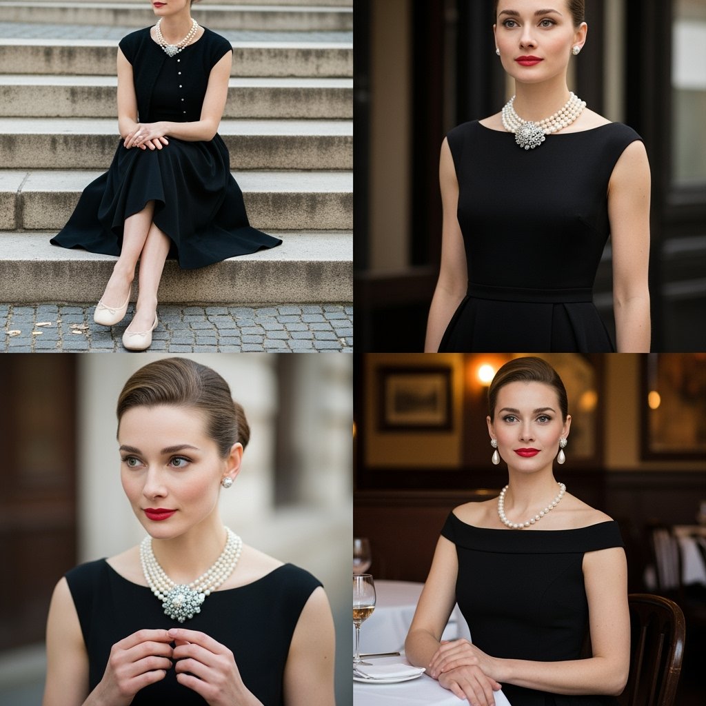 There’s a reason the LBD has never left the fashion stage  it’s endlessly adaptable. Pearls add a soft yet sophisticated touch that turns this into a modern-day Audrey Hepburn moment.