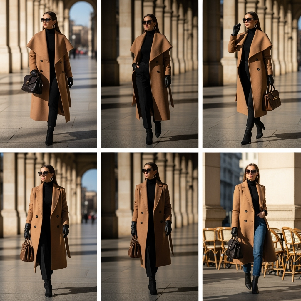 When you want to feel instantly polished, this pairing never fails. A camel coat brings warmth and richness to your outfit, while a fitted black turtleneck adds sleek contrast.