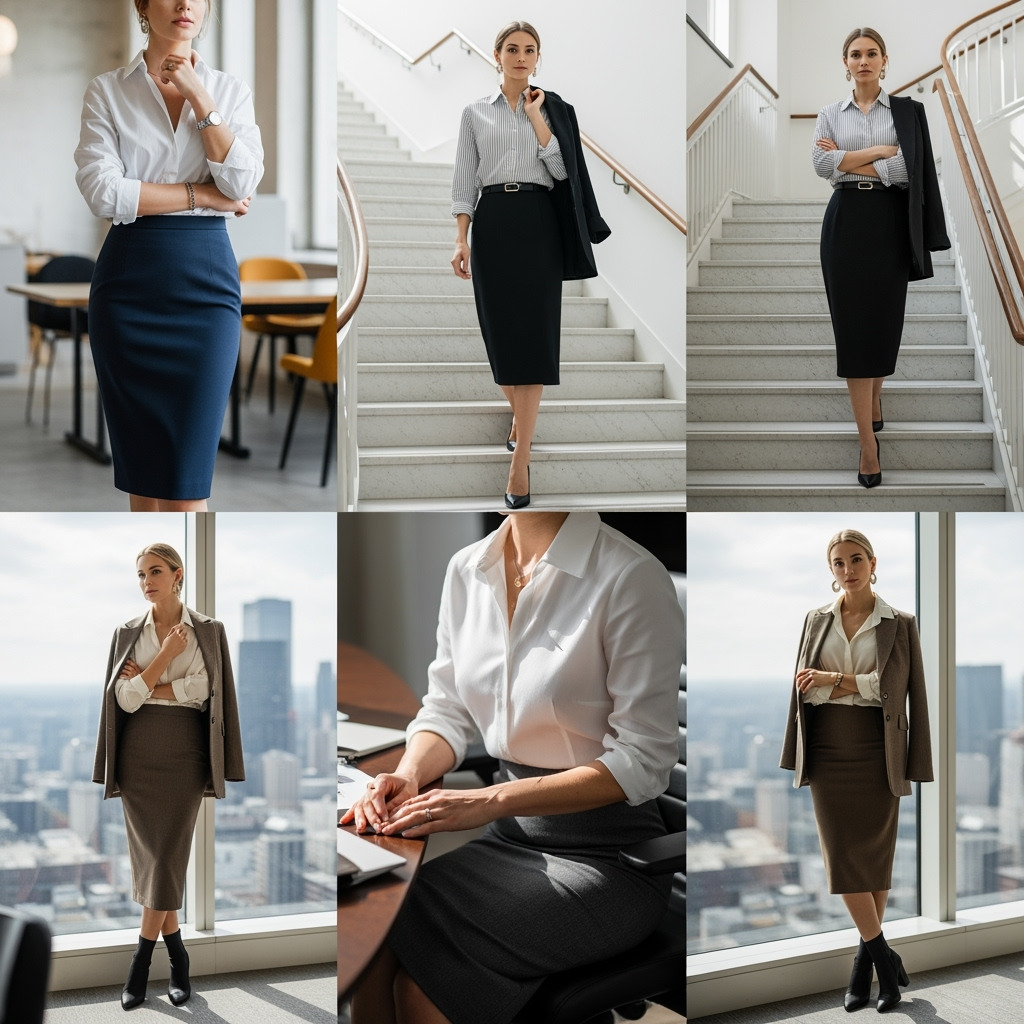 The pencil skirt and button-down combo is true power dressing  strong yet feminine. Choose a skirt that hits just at or below the knee for maximum versatility. A crisp white shirt is the classic choice, but light blue or fine pinstripes also add chic variety. Wear with pointed-toe heels for a formal look or sleek ankle boots for modern edge.