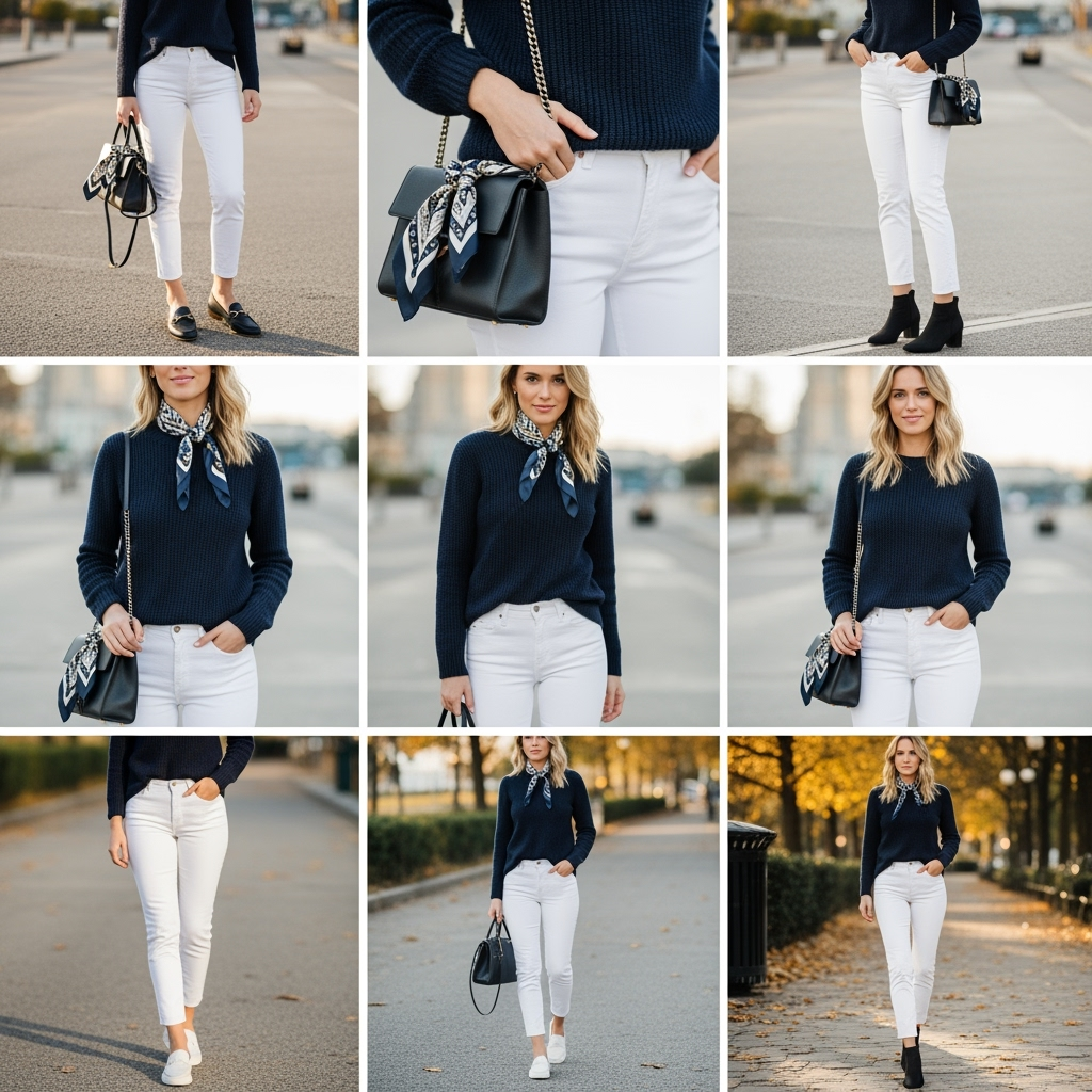 9. Navy Sweater & White Jeans