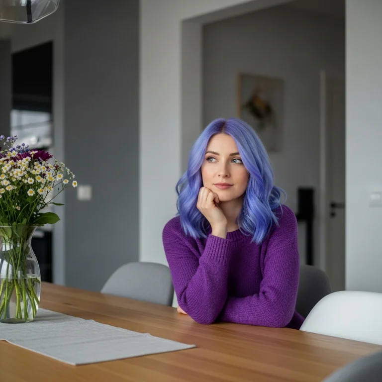 Lavender-blue mix brings unique beauty. This hair color feels different and pretty. The purple-blue tone looks magical!