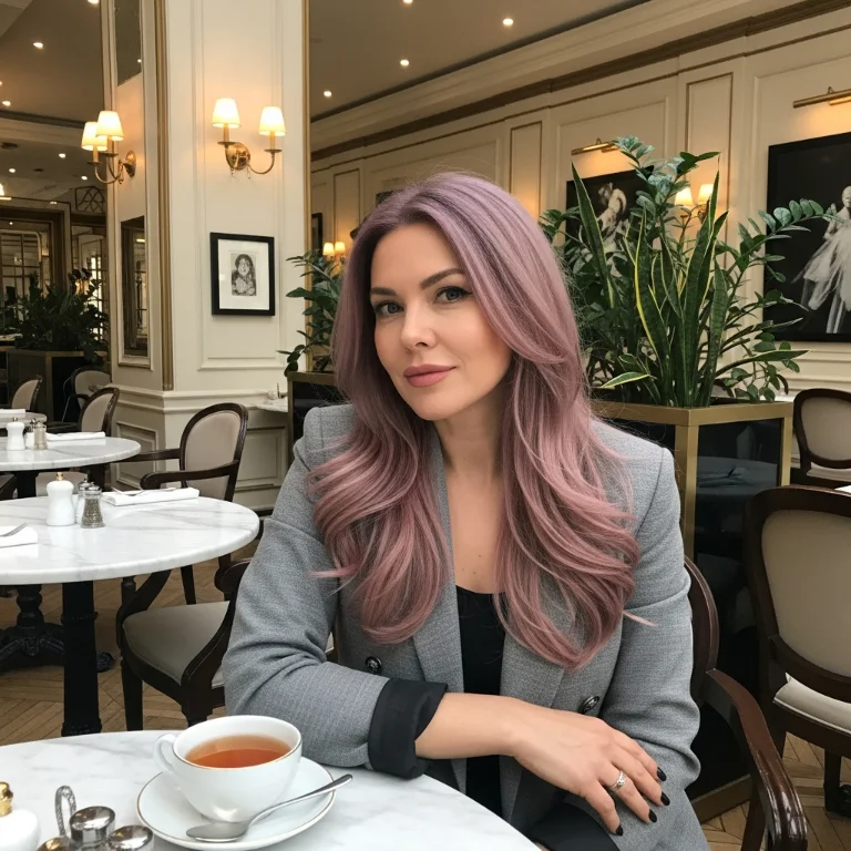Greyish-pink creates sophisticated softness. This hair color feels mature and pretty. The dusty tone looks refined!