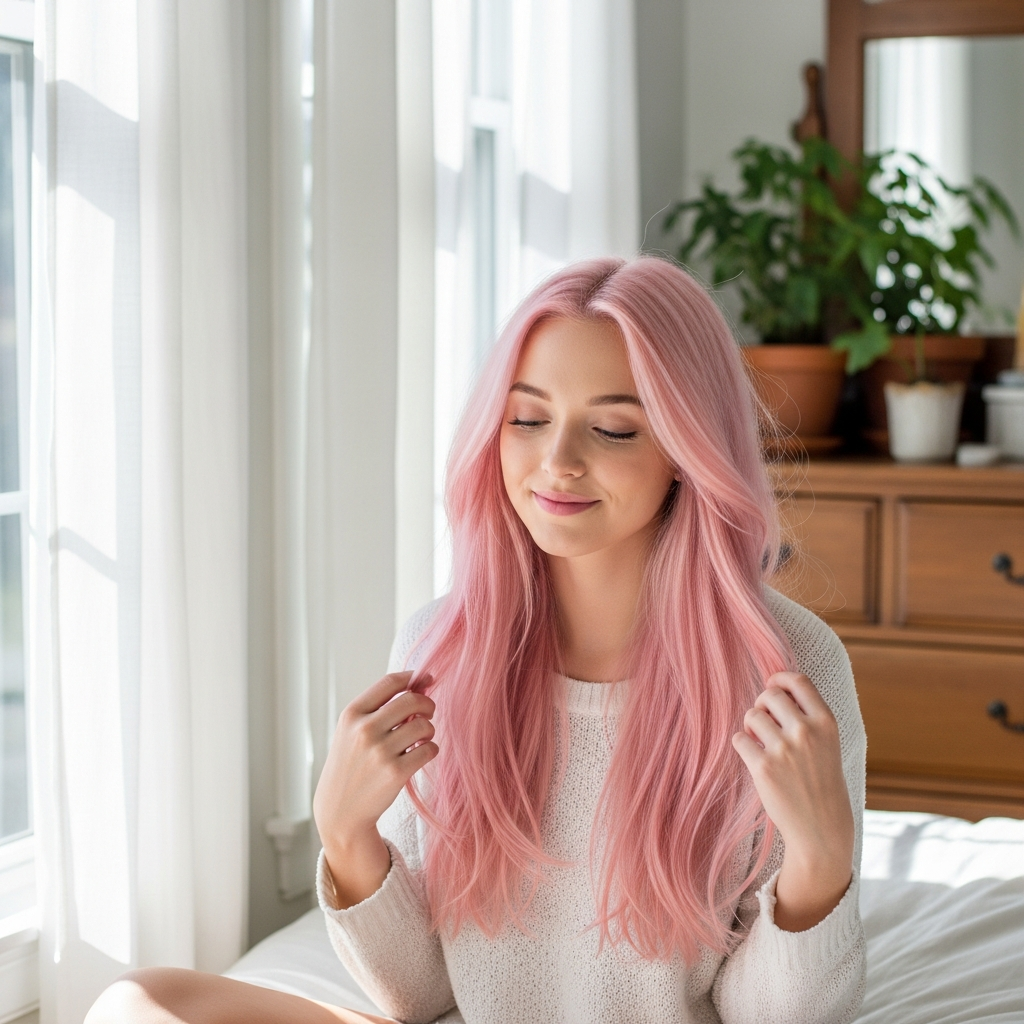 This spring hair color feels soft and dreamy. Baby pink is so gentle. Perfect pastel romance!