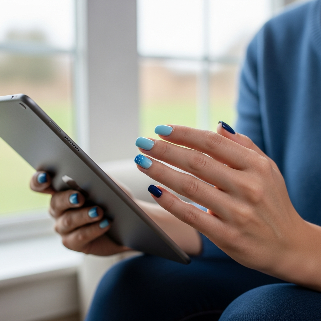 Use sponge to blend light and dark blue seamlessly. Start pale at cuticles building to deep navy at tips. The gradient represents depth of American pride.