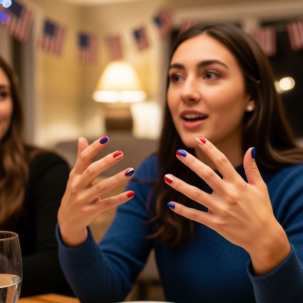 Keep most nails solid patriotic colors simply. Add small American flag on one or two accent nails. The subtle approach feels dignified and appropriate always.
