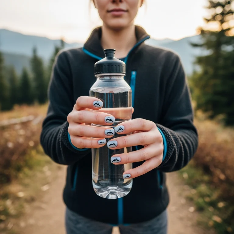 Paint simple mountain shapes on accent nails. Use black or navy on light backgrounds. The imagery motivates reaching summits.