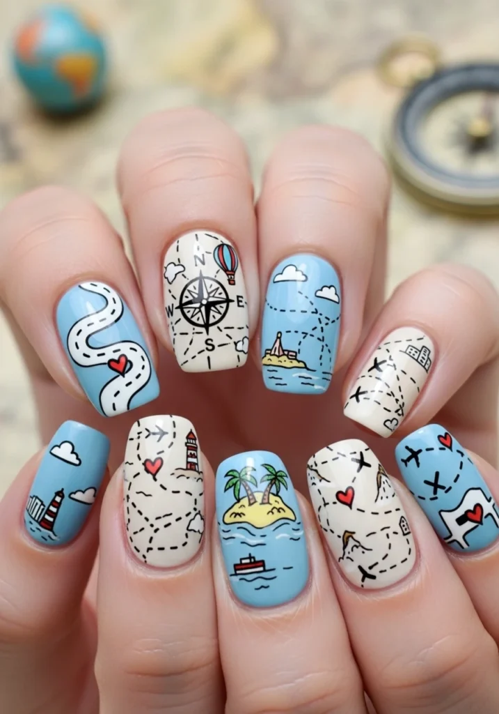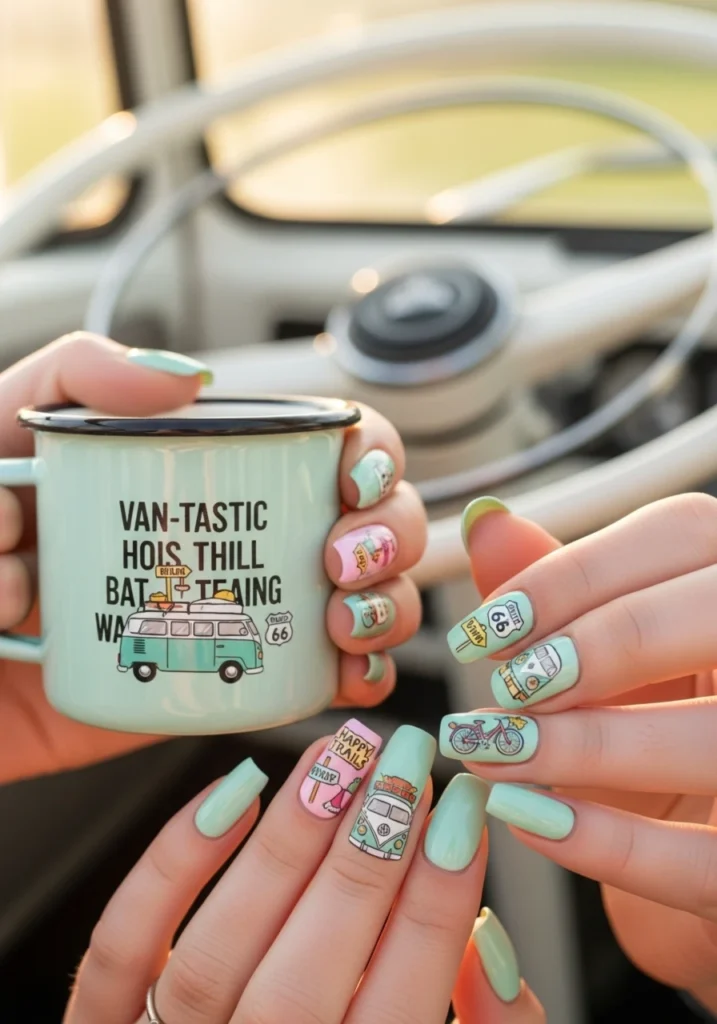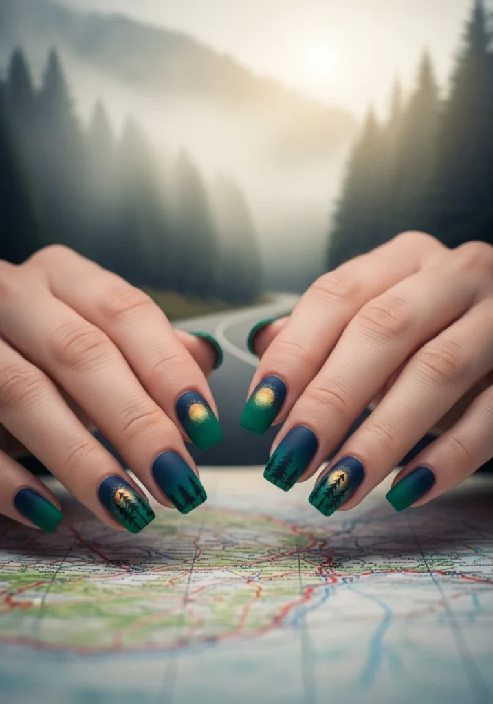 These 13 designs prove that whether you’re heading for neon-lit cities, quiet forest trails, or desert horizons, your manicure can match the mood of your route.